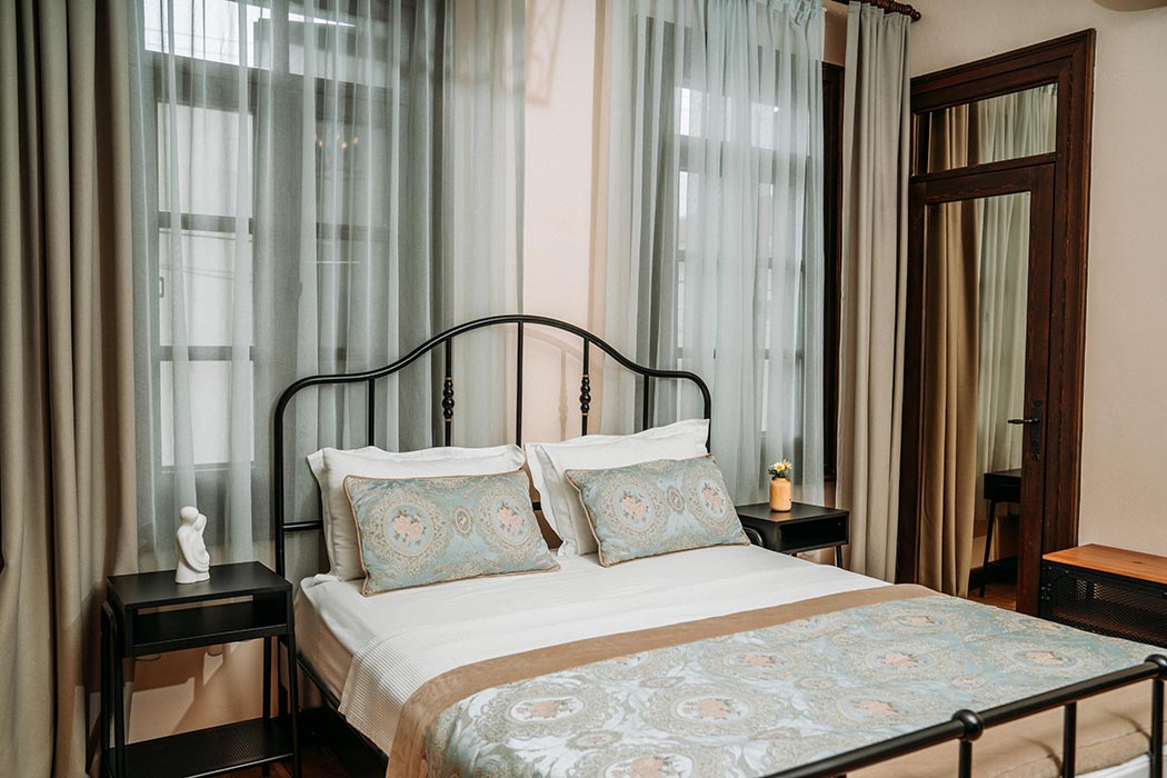 Rooms are located on the front of the NILS Stone House and have street view. Thanks to large windows all rooms are bright.